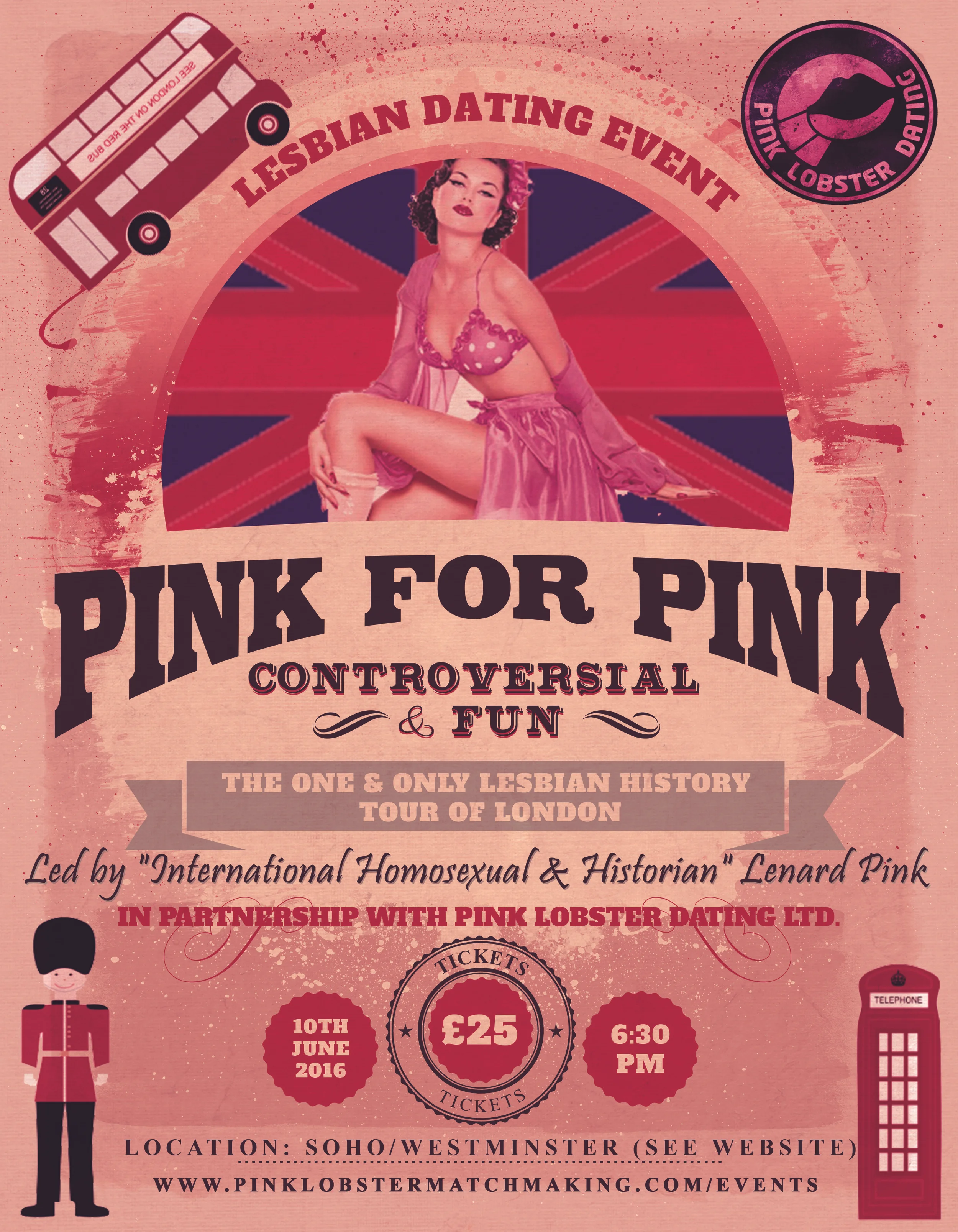 Founder of Pink Lobster Dating, Juliette Prais, points out: “Pink for Pink tours will be a UK first. There have been so many gay history tours for men, why not one for lesbians? When I met Lenard Pink, I just knew that he would be the best guide. His character is an incredible creation and what is more, he is able to offer tours that are factual, fun and feisty. He is a real tour de force.”